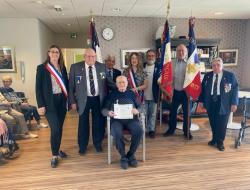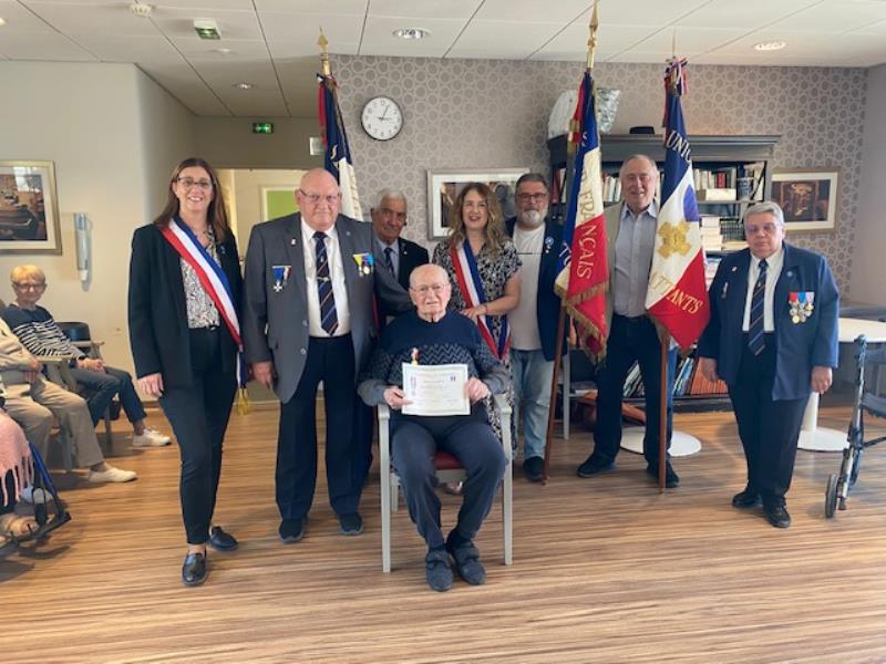 Résidence Le Grand Chai > Actualités > Cérémonie avec les anciens combattants à la résidence du Grand Chai Cérémonie avec les anciens combattants à la résidence du Grand Chai Publiée le 16/04/2026 M.Nicolas a reçu mercredi 15 avril la médaille du mérite par la maire de Poussan et les ancien combattants.