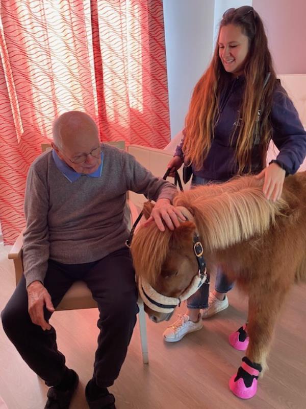 Résidence Le Grand Chai > Actualités > Poney Visiteur à La résidence du Grand Chai Poney Visiteur à La résidence du Grand Chai Publiée le 17/03/2026 Les résidents ont eu la visite de la ponette Kaîna, ce lundi matin