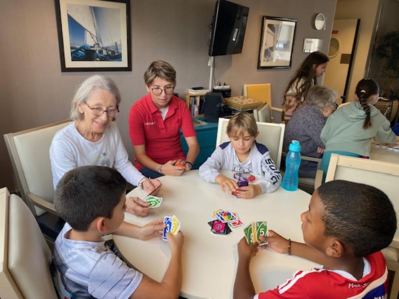 Résidence Le Grand Chai > Actualités > RENCONTRE INTERGENERATIONNELLE RENCONTRE INTERGENERATIONNELLE Publiée le 12/11/2025 Mercredi après-midi, les jeunes du centre du loisirs de Balaruc le Vieux sont venus jouer aux jeux de société avec les résidents.